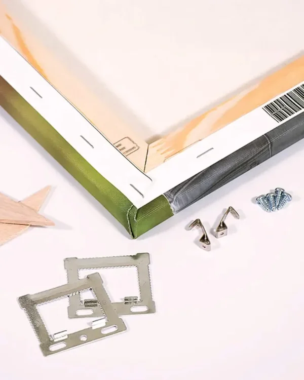 Jede Leinwand wird inklusive passendem Aufhängeset geliefert. Das mitgelieferte Befestigungsmaterial ermöglicht eine einfache und sichere Montage, sodass die Leinwand schnell und problemlos an der Wand angebracht werden kann. Der stabile Keilrahmen sorgt dabei für einen sicheren Halt und eine saubere Präsentation.