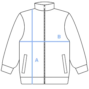 Lege das Kleidungsstück auf einen ebenen Untergrund und miss es von links nach rechts über die Brust, etwa 2 cm unter den Armen.